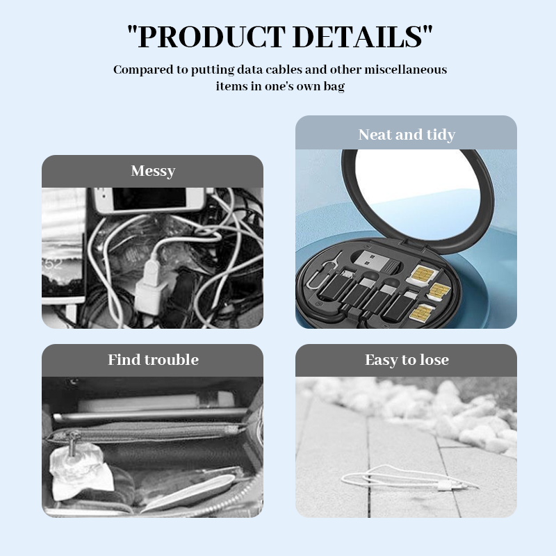 🔌 All-in-One Portable Charging Kit – 4-in-1 Data Cable with Smart Storage Case 📱