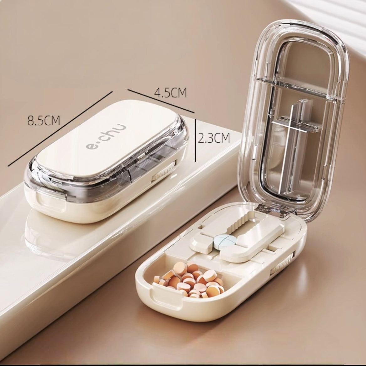 The sharp stainless steel blade delivers clean, even cuts without crumbling. The built-in compartment holds whole or split pills, making cutting and storage effortless — perfect for on-the-go use!
