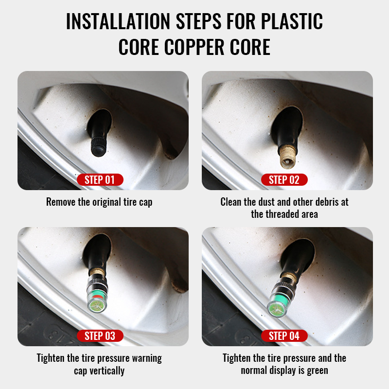 Just twist on like a regular valve cap. No tools required, long-lasting and reliable.